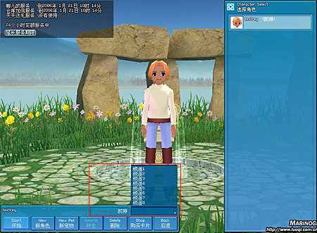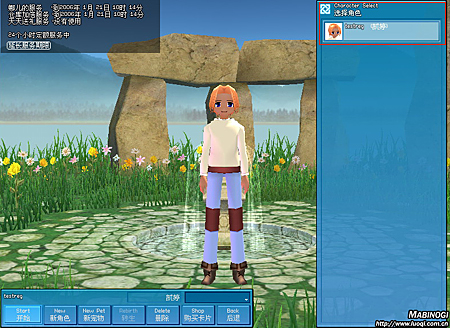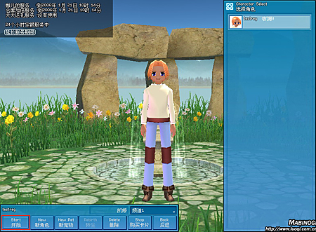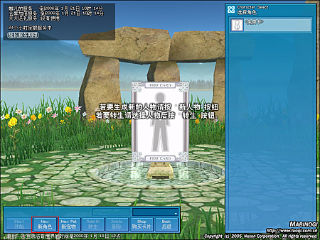 角色创建完毕后,选择角色和服务器频道开始游戏,按“