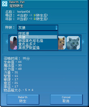 ·宠物角色在出生/转生一周后才可以转生